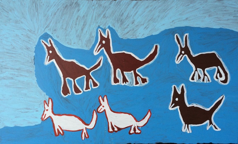 The artworks have all been sourced from Aboriginal art centres from regional and remote communities around Australia. Arts Law has built relationships with these centres through the outreach work of the Artists in the Black service. Artists in the Blackprovides Aboriginal artists and organisations access to free legal advice and information, to help them to protect their artistic work, their intellectual property and their cultural heritage. A key part of the service is going out to the different communities in order to provide workshops, seminars, legal advice or assistance. We also assist in drafting wills for the artists from the centres, which helps the artists to continueto provide for their families after they have passed away by facilitating access to copyright royalties as well as the distribution of money from the sale of artworks in line with the artist’s wishes. You can read about some of the artists we have helped from Papunya Tjupi here, Elcho Island Arts here, Tjanpi Desert Weavers here and Mowanjum Art Centre here, art centres all participating in the auction.