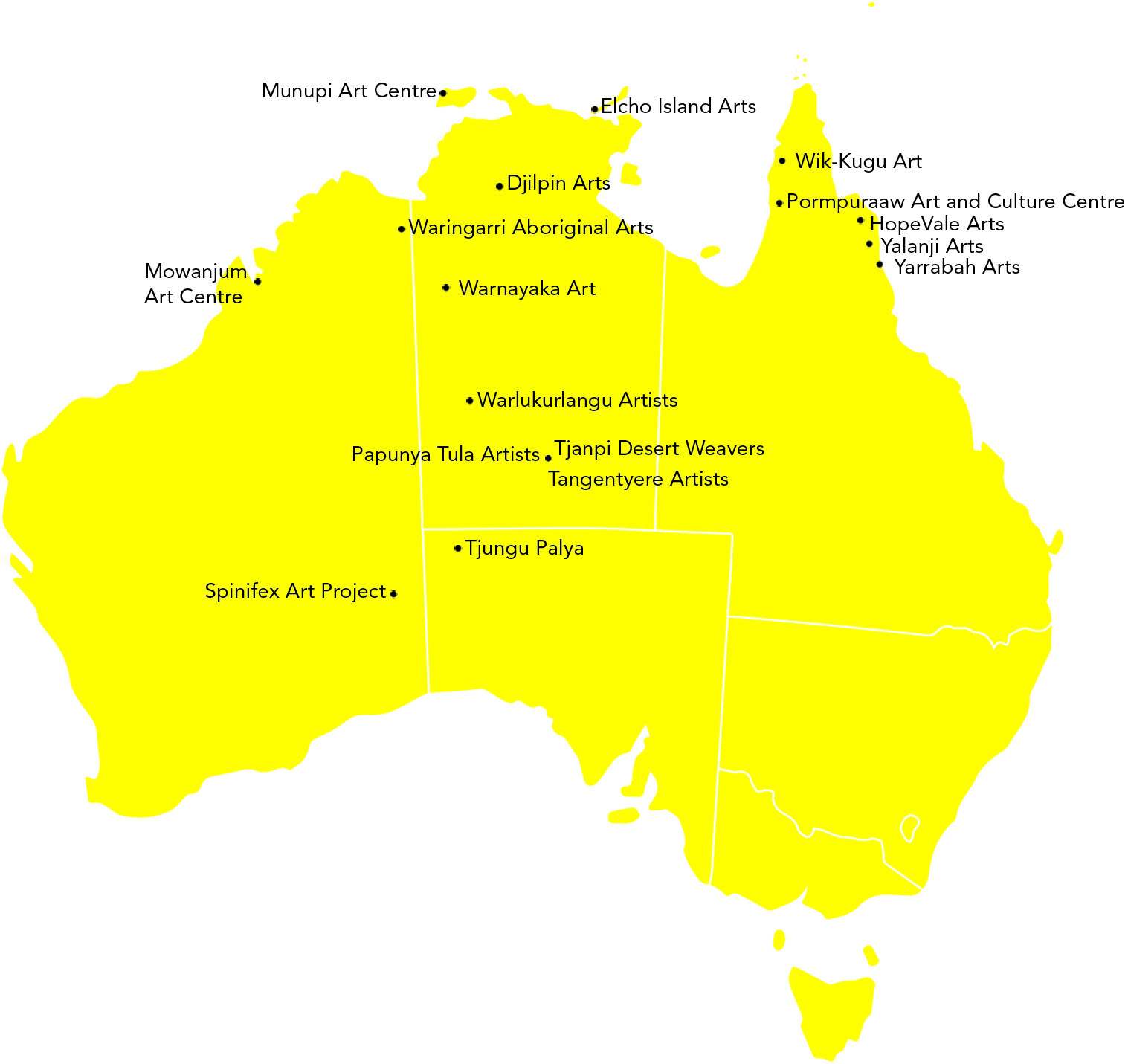 There will also be beautiful pieces from Ernabella Arts, Munupi Arts and Crafts, Pompuraaw Art & Culture Centre, Tangentyere Artists, Tjungu Palya, Waringarri Aboriginal Arts, Warlukurlangu, Warnayaka Art and Cultural Aboriginal Corporation, Wik-Kugu Art Centre, Yalanji Arts and Yarrabah Arts Centre.